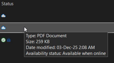 However, even though the folder hierarchy is visible, files are not fully downloaded to your local machine until you open them or mark them as “Always keep on this device.”