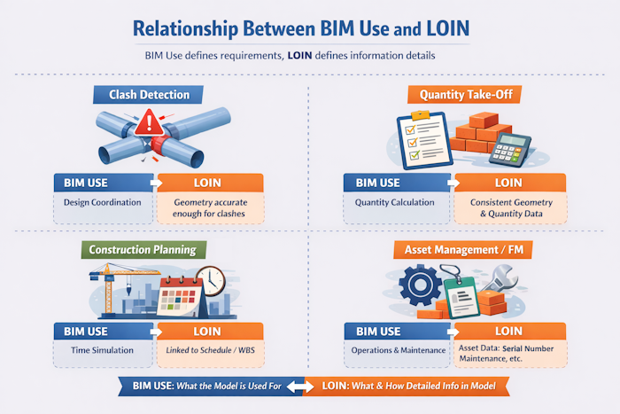 Once BIM Uses are clearly defined, the next step is determining the appropriate Level of Information Need (LOIN). ISO 19650 emphasizes that information should be fit for purpose, not excessive.