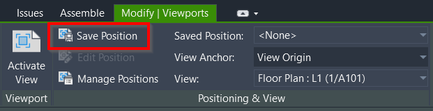 Place your Master View: Open a sheet and place your primary view (e.g., Level 1 Floor Plan). Position it exactly where you want it on the title block. Select the view then save the position by clicking the button on the Modify tab> Positioning & View panel.