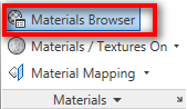 Before we can use the materials, we need to load them to our document. Open material browser by clicking material browser in render tab, materials panel.